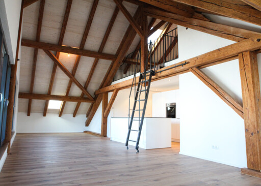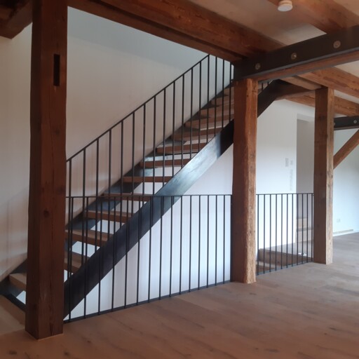 Stahl ergänzt sich perfekt als filigranes Element zum ehrwürdigen Holz im Altbau.